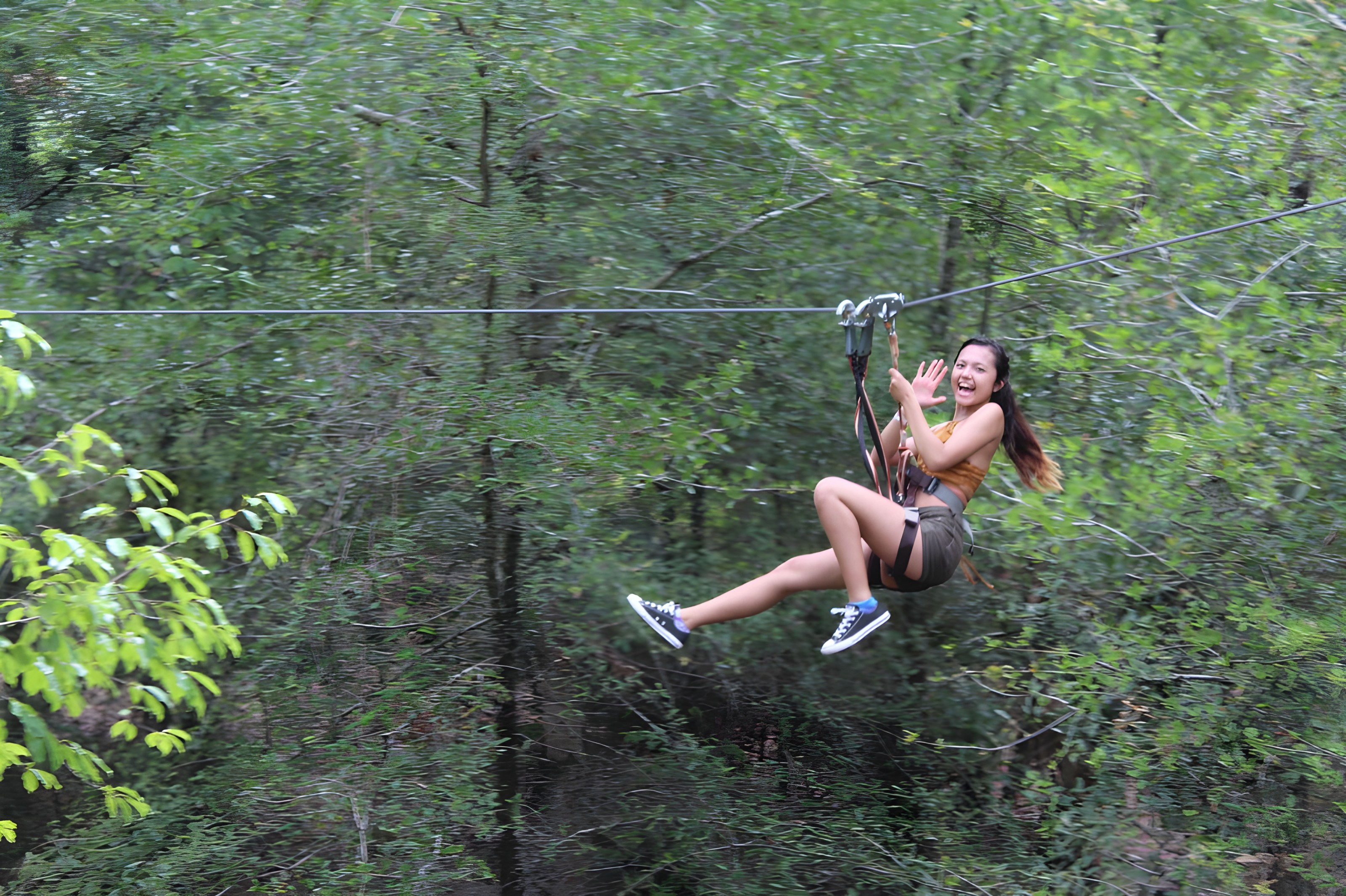 When you have completed your waiver form and paid for your access, you’ll begin a brief group training session. At the training session, you’ll be fitted into your harness and your guide will show you how to attach yourself to safety lines and how to attach yourself to a zip line. Once your guide deems that you can safely use your equipment, you’ll be able to proceed onto your first course.